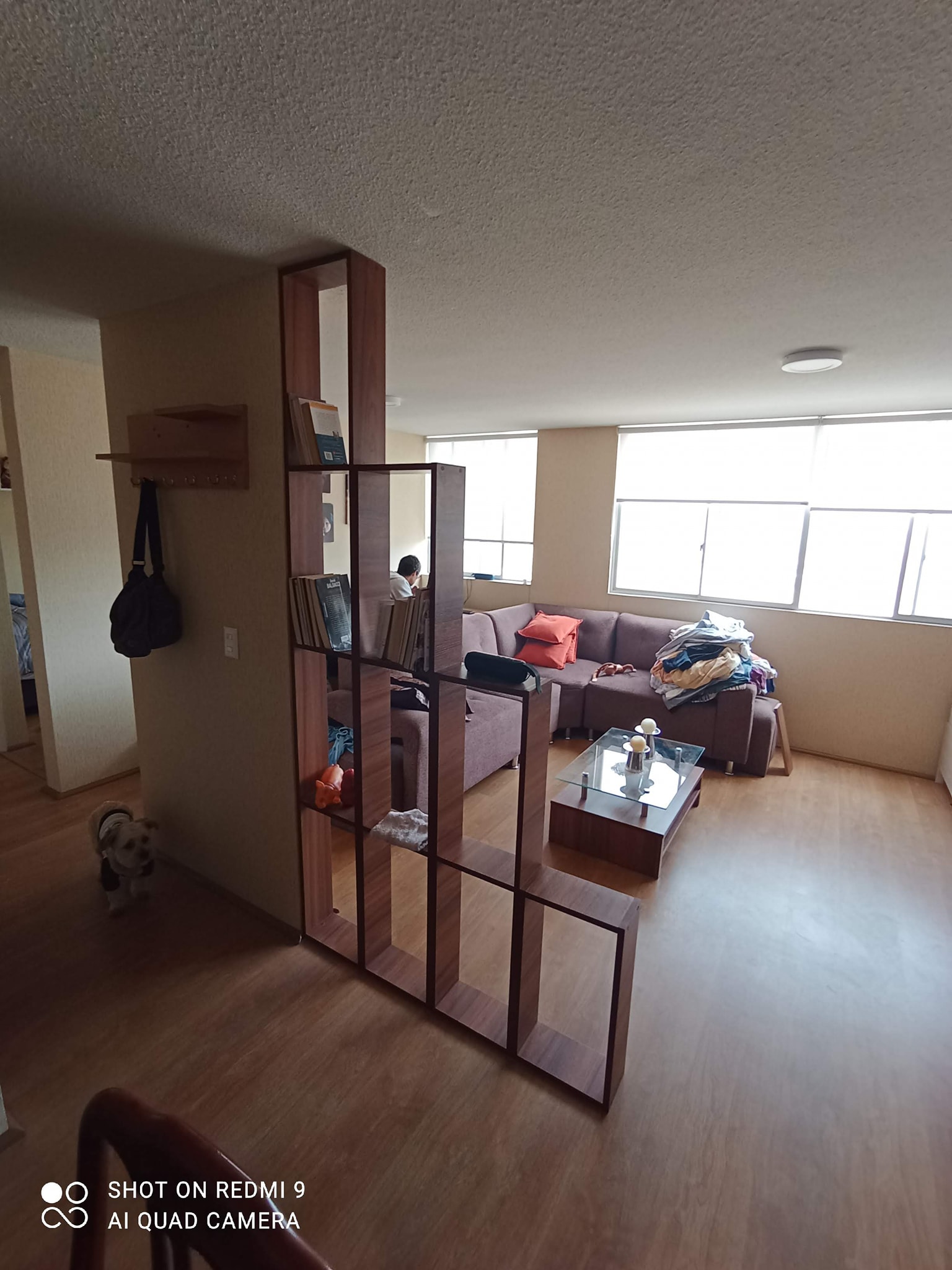 Instalación de Centro de entretenimiento , mesa de centro , repisas y separador de ambiente en un mismo color