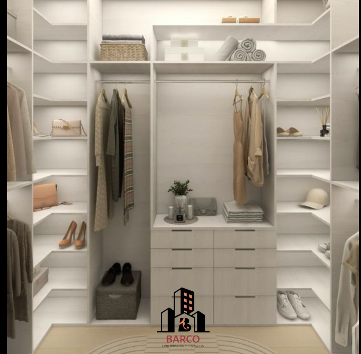 Closet espacioso y funcional, diseñado para optimizar el almacenamiento de tu ropa y accesorios. Con múltiples estantes, barras para colgar y cajones, ofrece una organización eficiente y accesible. Su diseño moderno y elegante se adapta a cualquier estilo de decoración, mientras que los materiales de alta calidad garantizan durabilidad. ¡Transforma tu espacio con este closet práctico y estiloso!