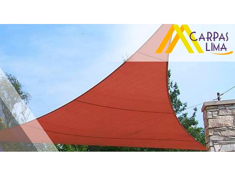 Toldo rojo tipo vela triangular