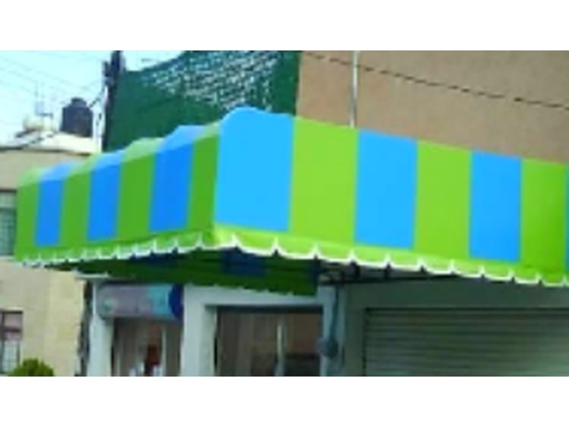 Toldo largo verde y celeste