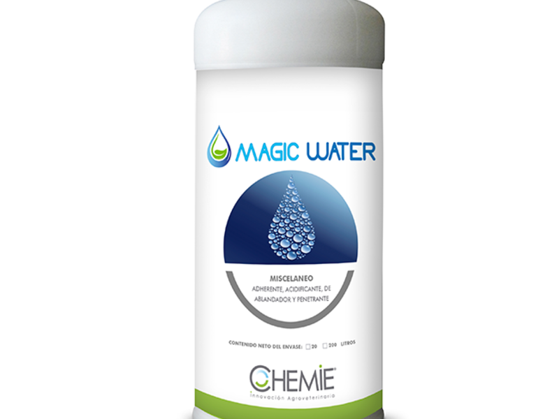 MAGIC WATER producto formulado para mejorar las características de las aguas con la que se aplican insecticidas, fungicidas, herbicidas, entre otros. Eficaz con agua alcalina (pH superior a 7) y duras (presencia de sales). Es el complemento para la aplicación que hace posible una mayor penetración en el suelo.