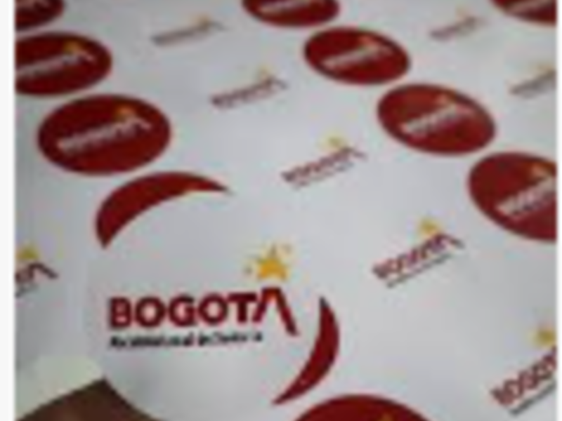 Etiquetas adhesivas impresas con mensajes promocionales.