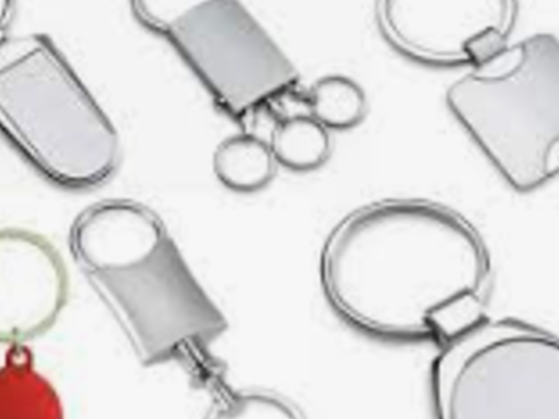 Estos llaveros están personalizados con logotipos, mensajes, o información de una empresa.