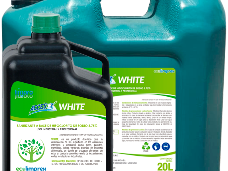 Sanitización de superficies en ambientes interiores y exteriores, tales como pisos, paredes, mesas, etc., también puede ser utilizado en la desinfección de frutas y verduras al estar compuestos básicamente de Hipoclorito de Sodio, tal como lo recomienda el minsa e Inacal en sus cartillas informativas. Además, puede ser empleado para la sanitización de equipos, utensilios y superficie en cocinas industriales, como paños, tabla de picar, etc., y como lejía blanqueador en lavado de ropa blanca.