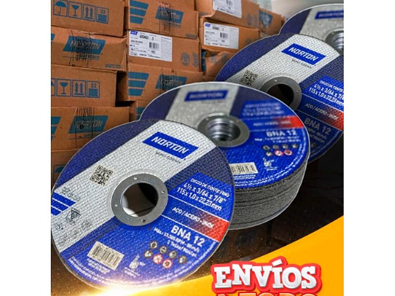 Los discos Norton son herramientas de abrasión de alta calidad diseñadas para corte, desbaste y pulido de diversos materiales. Disponibles en una amplia gama de tipos y tamaños, estos discos están fabricados con materiales resistentes y duraderos como óxido de aluminio, carburo de silicio y zirconio, asegurando un rendimiento eficiente y prolongado. Ideales para trabajar con metal, piedra, concreto y cerámica, los discos Norton ofrecen una excelente capacidad de corte y una alta resistencia al desgaste, siendo perfectos para aplicaciones industriales, de construcción y de mantenimiento.
