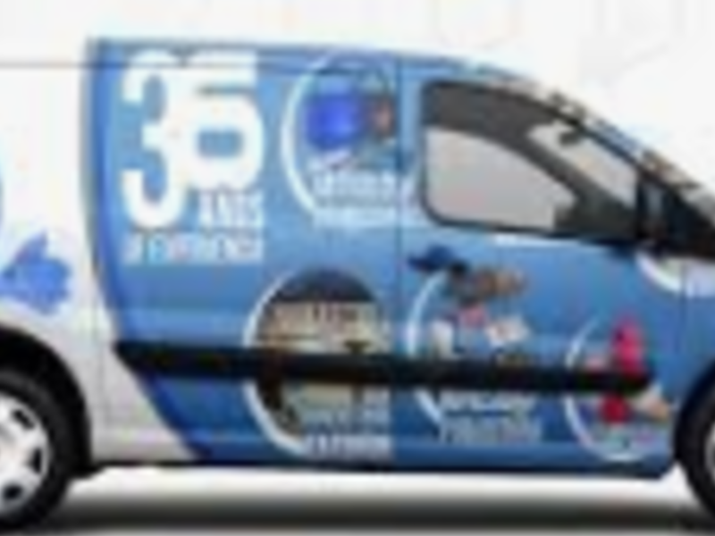 Se aplican gráficos y letras cortados en vinilo autoadhesivo a la superficie del vehículo.