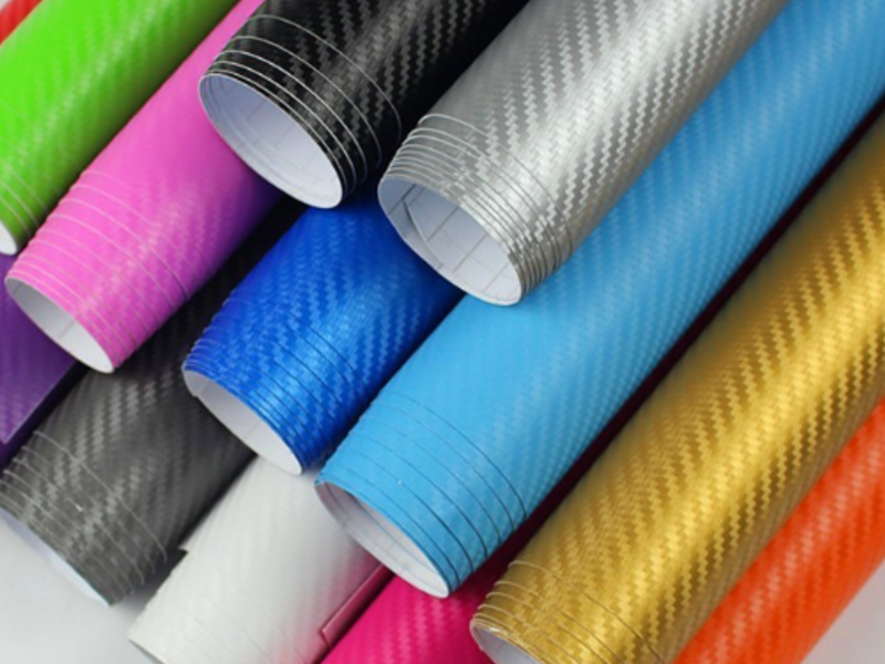 Material flexible y autoadhesivo que se utiliza comúnmente para fines decorativos y publicitarios.