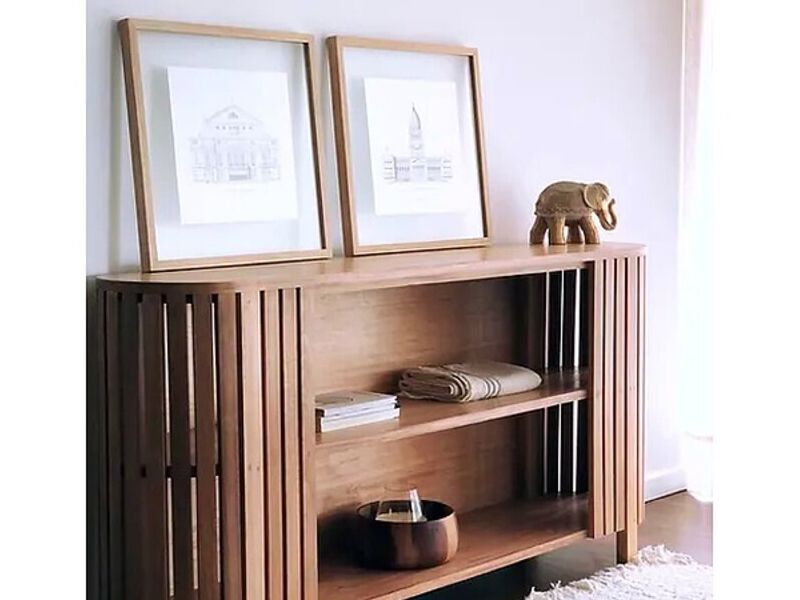 Cómoda curva de madera varillada.