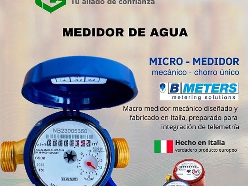 Macro medidor mecánico diseñado y fabricado en Italia para la integración de telemetría.