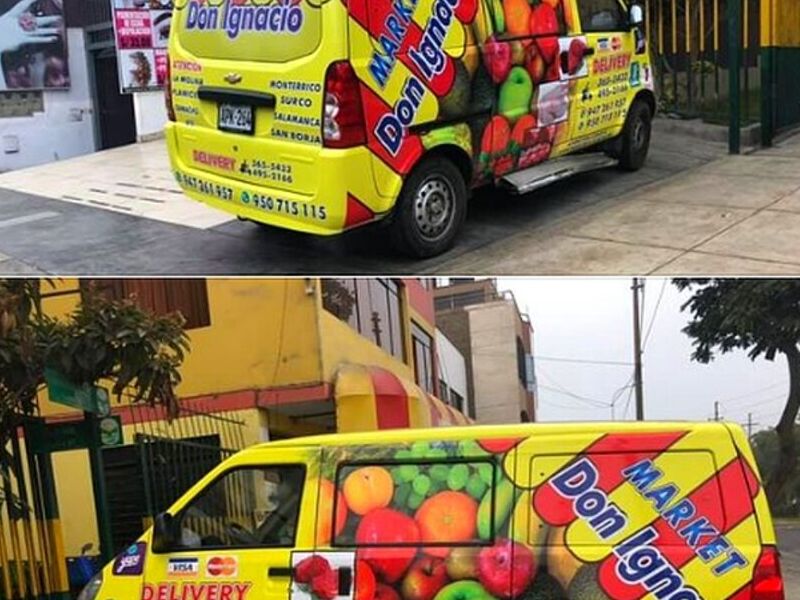Publicidad sobre vehículo con vinilos resistentes al sol y lluvia