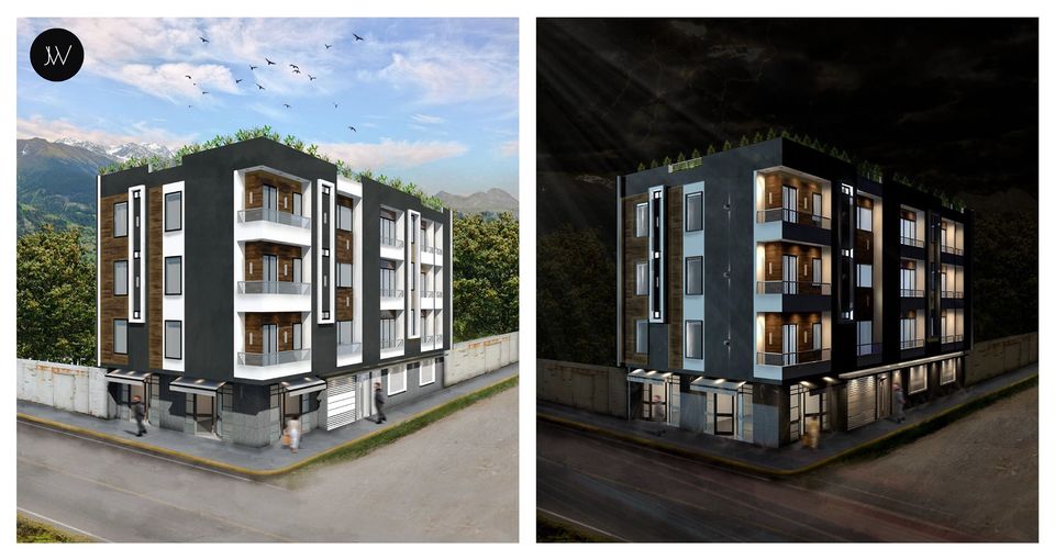 Con un terreno de 200m2 ubicado en una esquina del centro poblado de Chasquitambo, se busca que el edificio sea icónico en la zona por su estructura, diseño y el uso mixto de residencia - comercio.