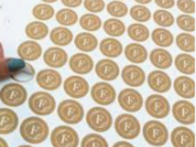 Que utiliza adhesivos con contenido gráfico o informativo relacionado con una marca.