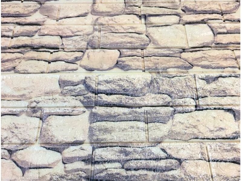 Papel tapiz estilo piedra para recubrimiento de paredes de sala.