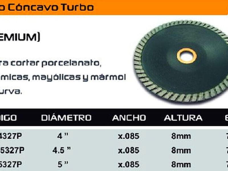 Ya sea que seas un profesional experimentado o un aficionado entusiasta, el Disco Cóncavo Turbo te ayudará a llevar tus proyectos al siguiente nivel. Obtén cortes limpios y precisos en una fracción del tiempo con esta herramienta de calidad superior. Potencia tu creatividad y logra resultados excepcionales con el Disco Cóncavo Turbo. ¡Hazte con el tuyo hoy mismo!