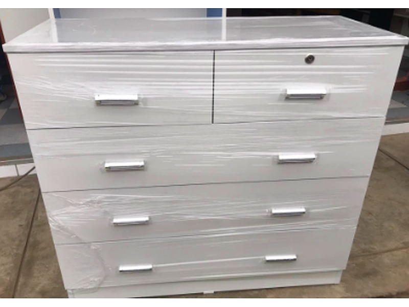 Una cómoda moderna está fabricada con una estructura de madera de alta calidad, como MDF o melamina, y suele estar acabada con laminados o lacas que le confieren un aspecto elegante y duradero.
