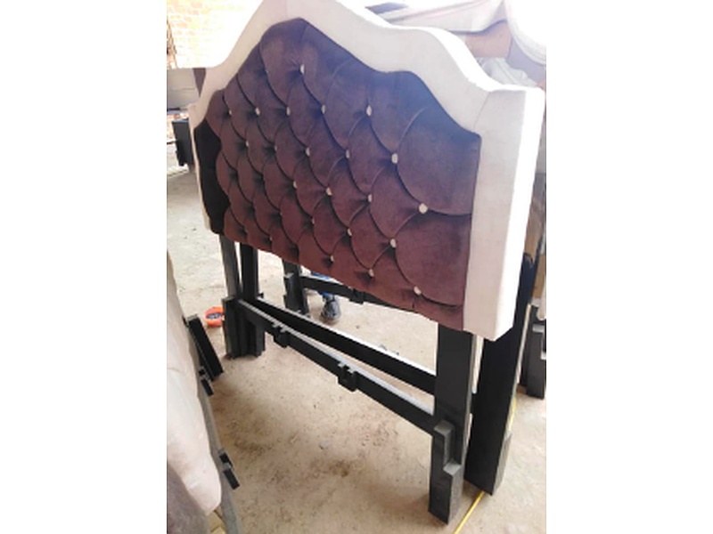 Cama con cabecera y estructura tapizada que aporta confort y estilo, está fabricada con materiales de alta calidad, garantizando durabilidad y elegancia al espacio.