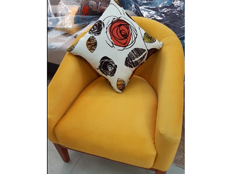Diseño contemporáneo, tapizada en una tela de tono amarillo brillante, esta butaca no solo es cómoda, sino también un punto focal en la decoración.