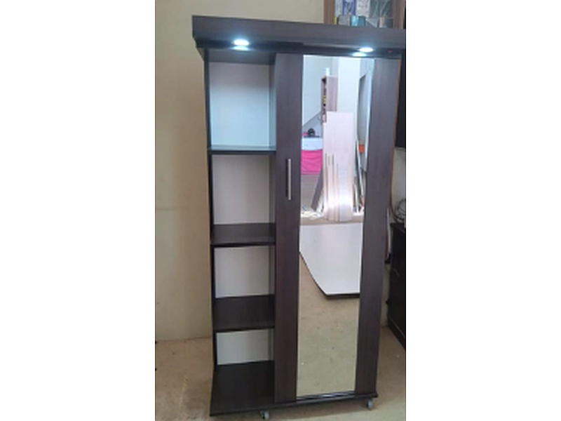 Armario moderno con un diseño elegante y funcional, cuenta con un espejo frontal que añade un toque de sofisticación y practicidad. Ideal para cualquier habitación, su estructura optimiza el espacio.