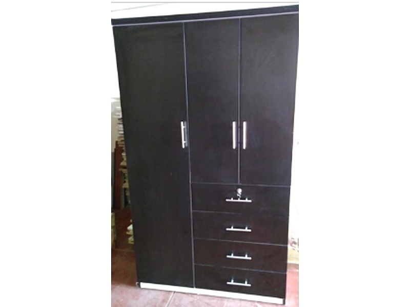 El ropero cuenta con una combinación de barras para colgar ropa, estantes para prendas dobladas y cajones para accesorios y pequeños artículos. Este diseño proporciona un almacenamiento eficiente y organizado para todo tu vestuario.