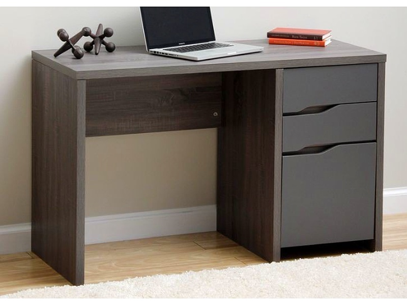 Escritorio gris de diseño moderno, ideal para oficinas o estudios en casa. Su superficie espaciosa y estructura resistente proporcionan funcionalidad y estilo contemporáneo.