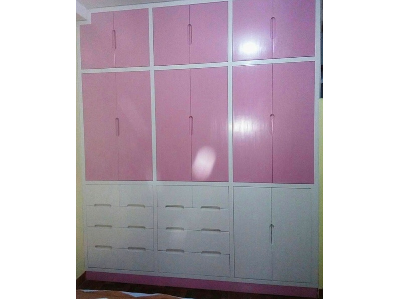 Armario blanco y rosado de varios espacios