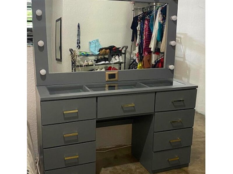Un mueble elegante y funcional, diseñado para facilitar la rutina de cuidado personal y maquillaje. Con espejos iluminados, cajones espaciosos y superficies amplias, este tocador ofrece un espacio dedicado para almacenar cosméticos, joyas y accesorios, mientras se brinda un lugar cómodo para prepararse para el día.