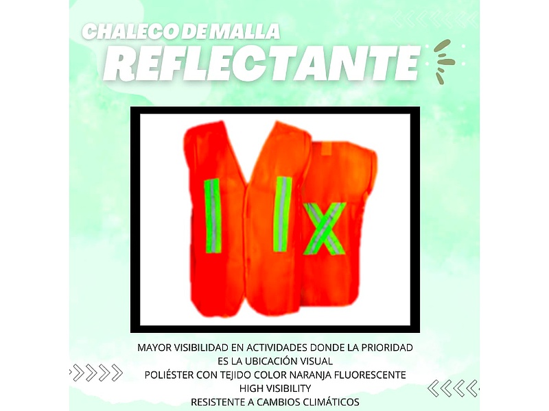 Chaleco reflectivo de material poliéster con tejido color naranja fluorescente.