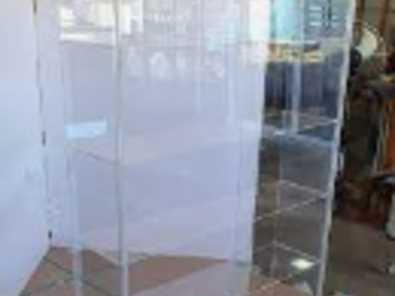 Está hecho de acrílico, que es un tipo de plástico transparente y duradero.