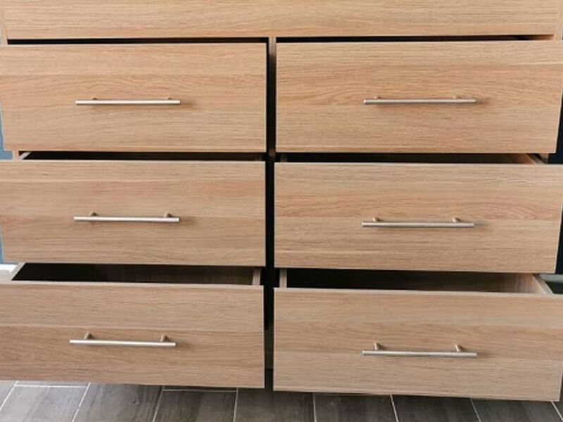 Una cajonera que ofrece espacio de almacenamiento adicional en cualquier habitación. Con cajones espaciosos y deslizantes suaves, proporciona una solución conveniente para guardar ropa, documentos y objetos personales de manera ordenada y accesible. Su diseño compacto y acabado elegante la convierten en una pieza versátil para cualquier espacio.