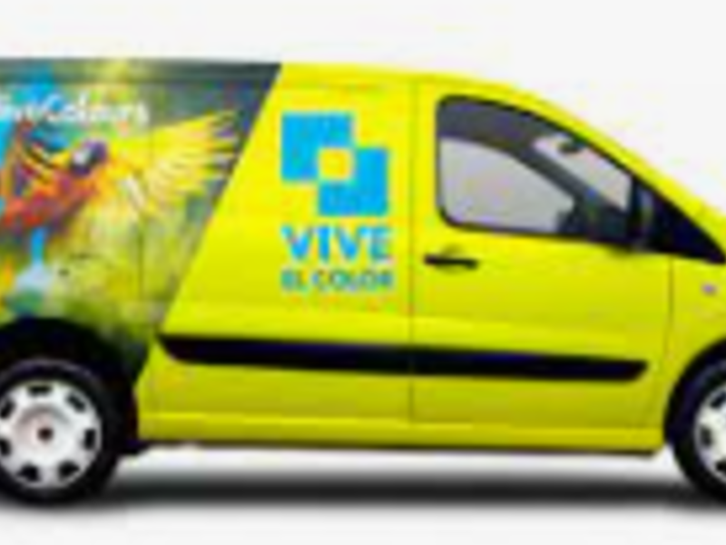 Se aplican gráficos y letras cortados en vinilo autoadhesivo a la superficie del vehículo.