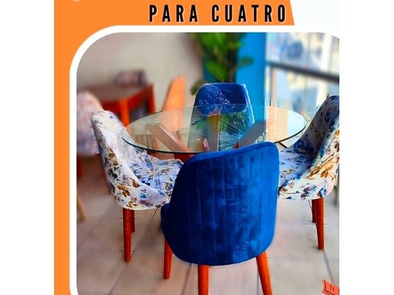 Comedor para cuatro de madera y vidrio.