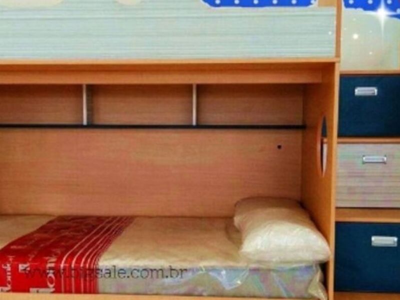 litera de madera con escalera.