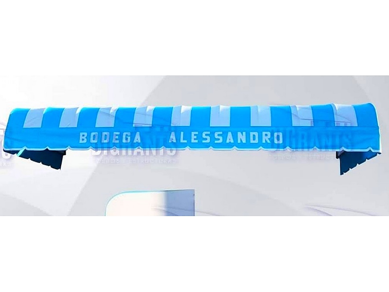 Toldo celeste y blanco curvo