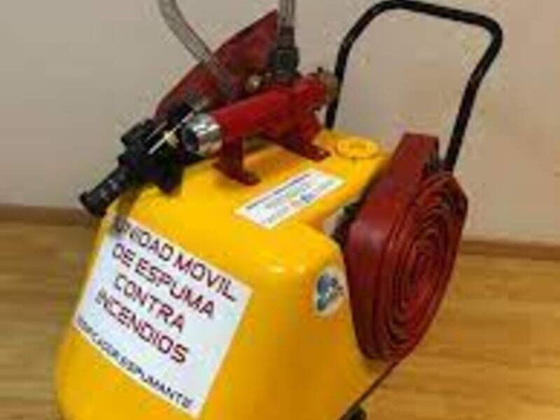 Un equipo portátil o vehículo equipado con sistemas de generación y aplicación de espuma de extinción de incendios. Estas unidades son esenciales en situaciones donde se requiere una rápida y efectiva extinción de incendios de clase A y B. La espuma ayuda a sofocar las llamas y a enfriar las superficies afectadas, proporcionando una extinción eficiente y minimizando el riesgo de que el fuego se reavive. Estas unidades móviles son comunes en entornos industriales y de respuesta a emergencias.