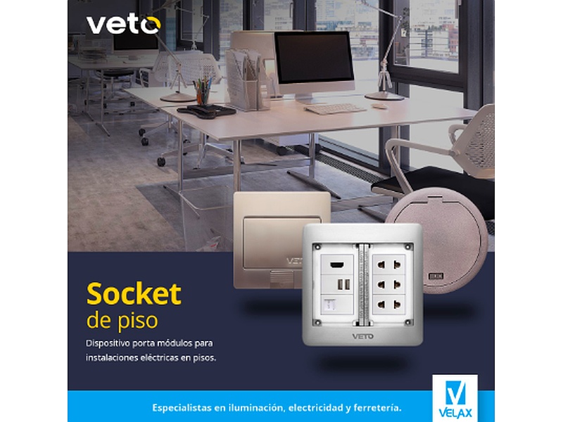 Socket de piso para módulos instalaciones eléctricas en pisos.