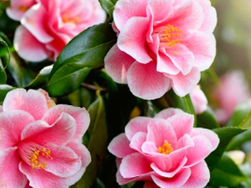 Las camelias son conocidas por sus hermosas flores, que pueden ser simples, semidobles o dobles, y vienen en una variedad de colores como blanco, rosa y rojo