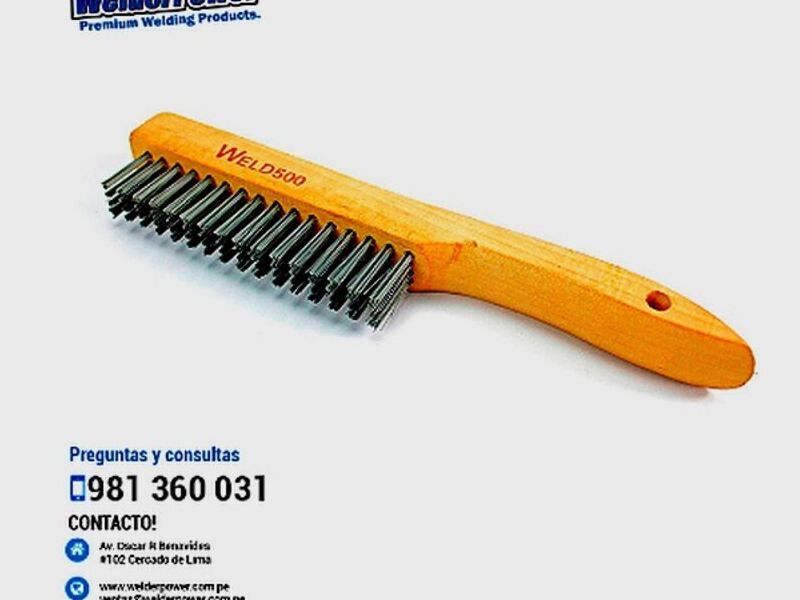 Cerdas de alta calidad montadas sobre una base de madera, ideales para uso de soldadores en trabajo ligero para la limpieza de biseles y cordones de soldadura.